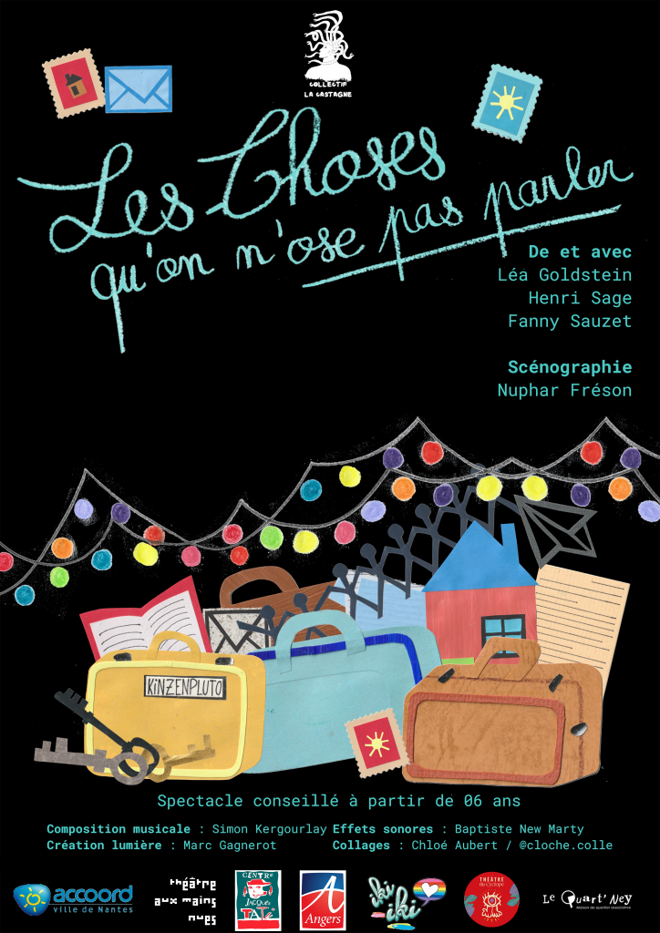 “Les Choses qu’on n’ose pas parler” c’est un peu comme un patchwork de mots, de musiques, de danses, de marionnettes ; tout ça pour parler des choses qu’on n’ose pas parler surtout quand on est enfant.