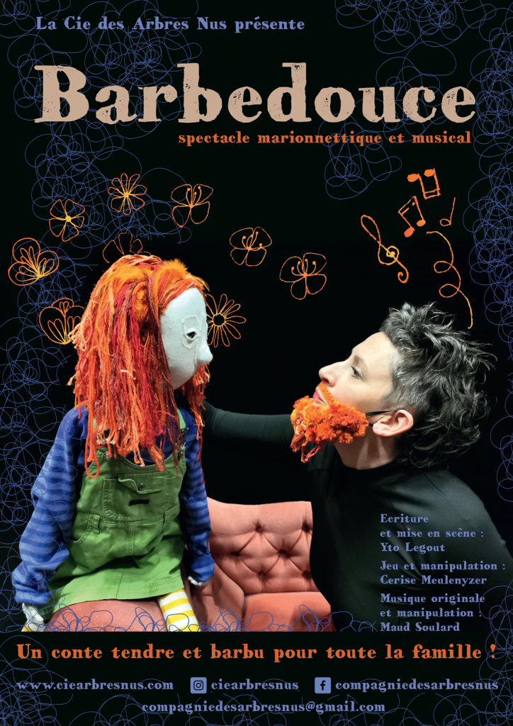 Cette semaine Barbedouce | Spectacle musical, marionnettesBarbedouce est un spectacle familial, marionnettique et musical ! Mais aussi drôle, poétique et un peu magique…· 🧔♀️ Mar 21 à 15h & du Mer 22 au Ven 24 à 10h30 & 15h | Réservation ici A l'affiche